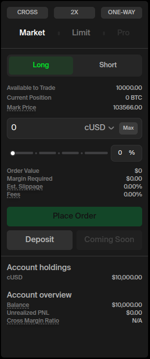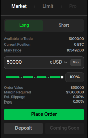 Select if you want to Long or Short the coin then enter the amount you want to trade and click ‘Place Order’.