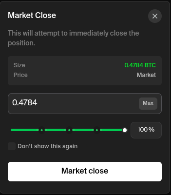 Enter the amount you want to sell then click ‘Market close’.