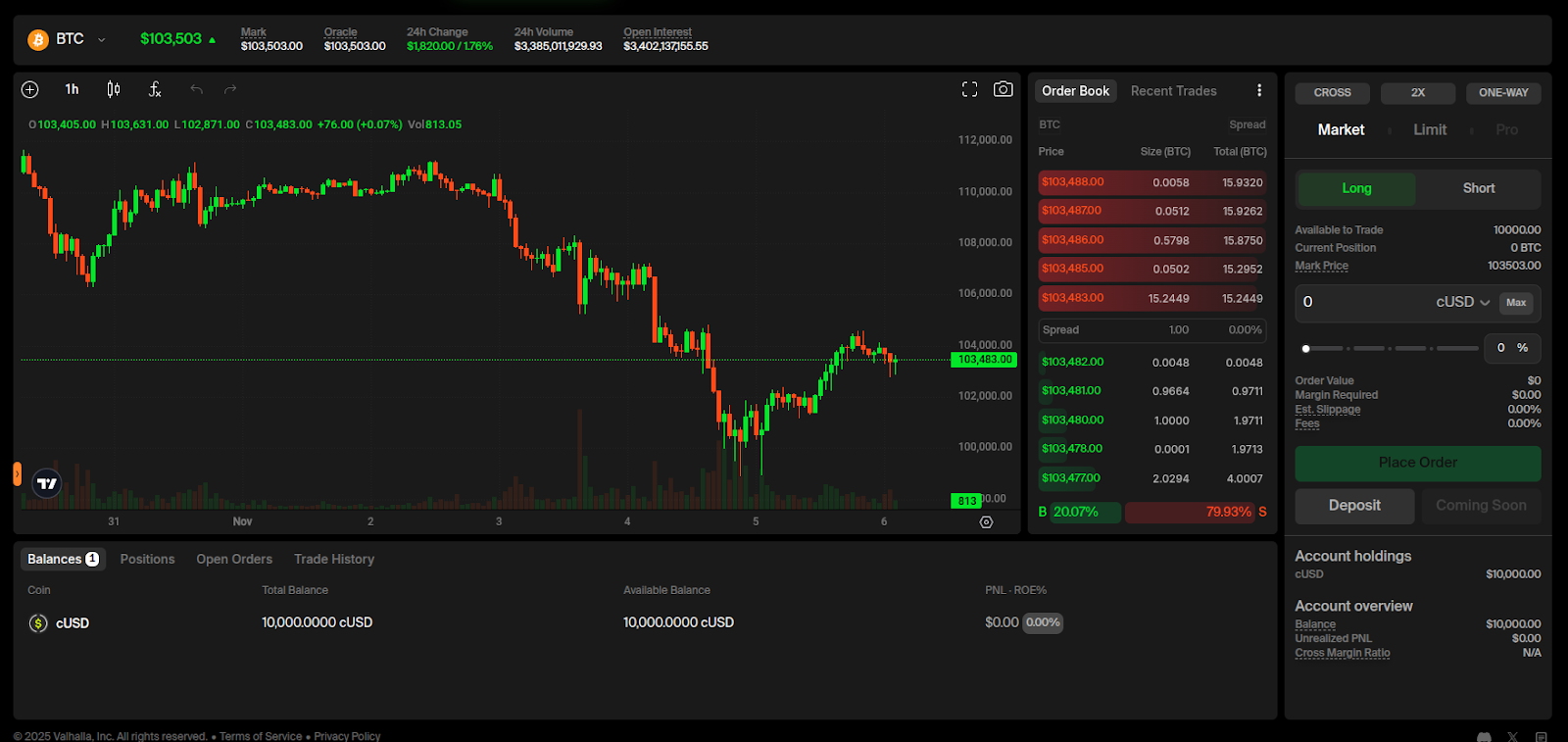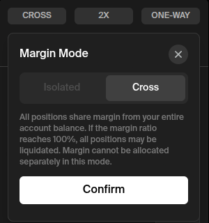 You can click ‘CROSS’ at the top left to change your margin mode. We will leave it on Cross for this example.