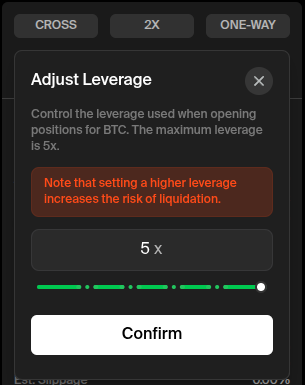 You can also adjust your leverage amount by clicking the multiplier, ‘2x’ for this example, above the trade form. We will set it to 5x for this example.