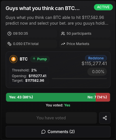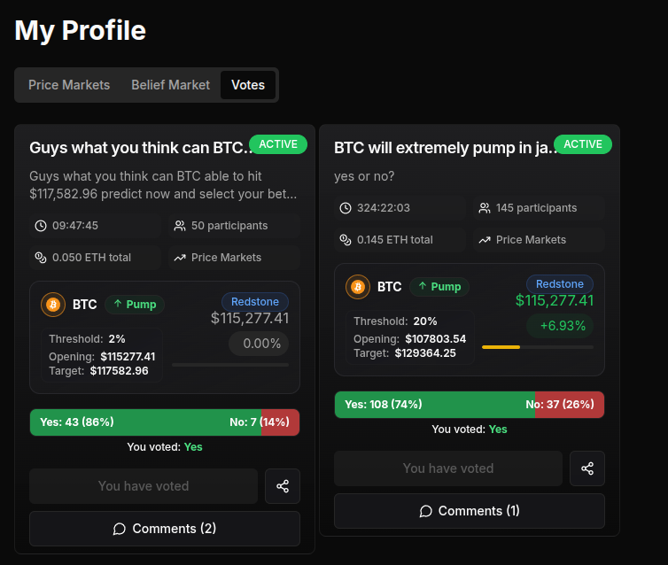 Once your transaction is confirmed, you should see that the market shows you have voted.