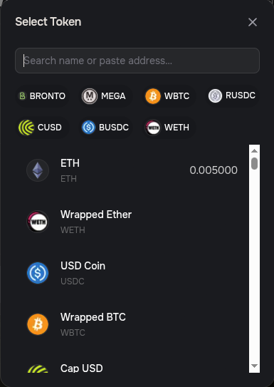 Select the token you want to swap. We will choose ETH for this example.