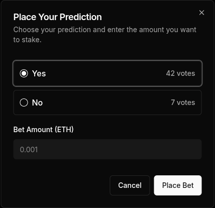 Select your prediction and your bet amount then click ‘Place Bet’.