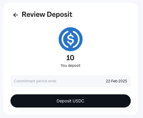 Double-check that you selected the correct lock-up period by looking at when your commitment period ends. Click on "Deposit USDC" when you're ready.