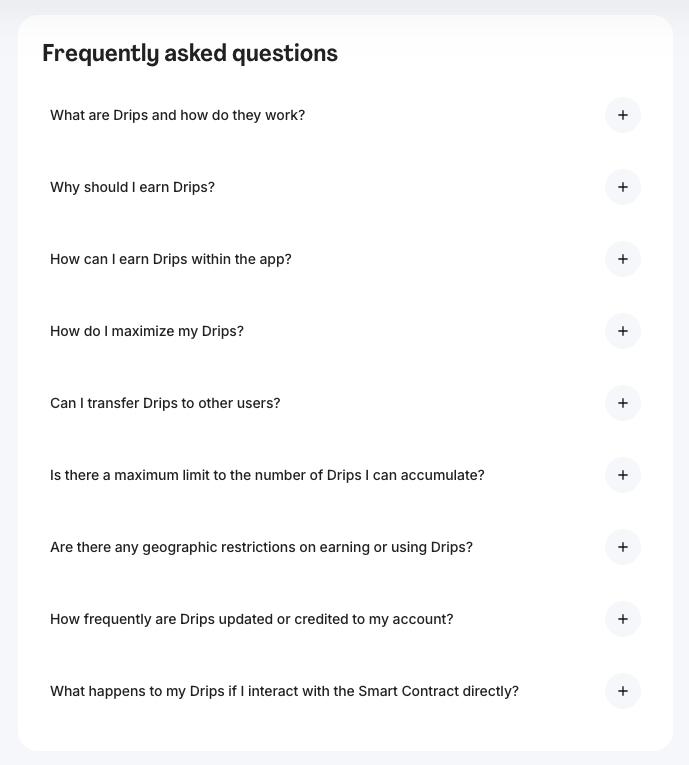Clicking on "Drips" on the navigational bar will take you to the page below where you can see your Drips earned per day, multiplier, and whether a withdrawal is available or not.