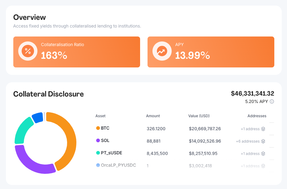 Click on "Details" on the navigational bar. Here you'll be able to see the current APY % along with other data like the collateralisation ratio, along with exactly how the collateral is split between assets.