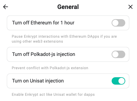 First things first you'll need to turn on the UniSat injection in Enkrypt.