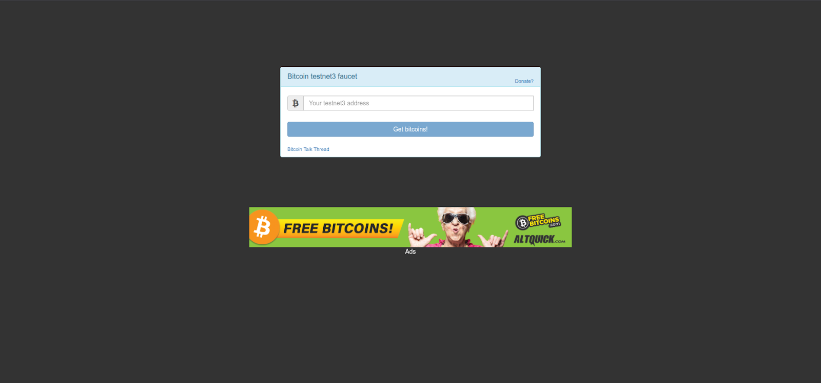 First head to an Unofficial Bitcoin Testnet Faucet website.