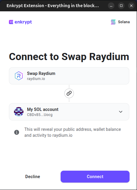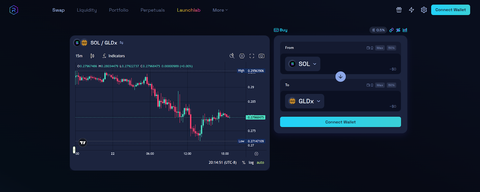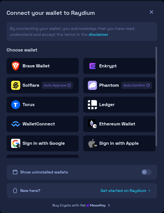 First, head to Raydium then click ‘Connect Wallet’.