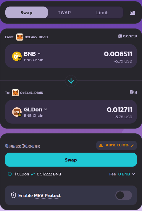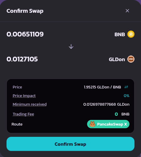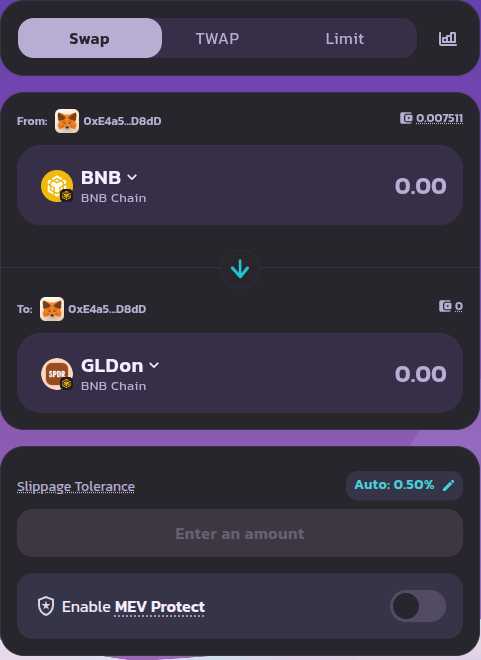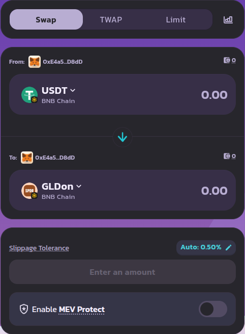 Here, you can search for which token you want to receive. We will choose the GLDon token.