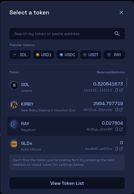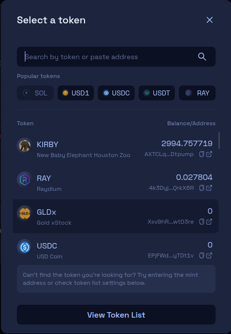 Select which token you want to swap from. We will leave it on SOL for this example.