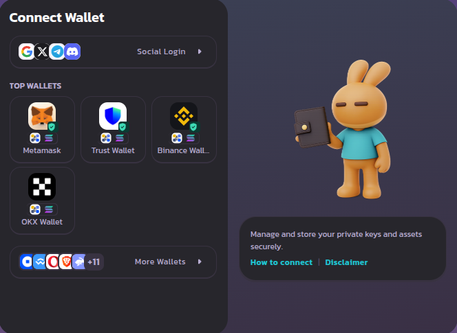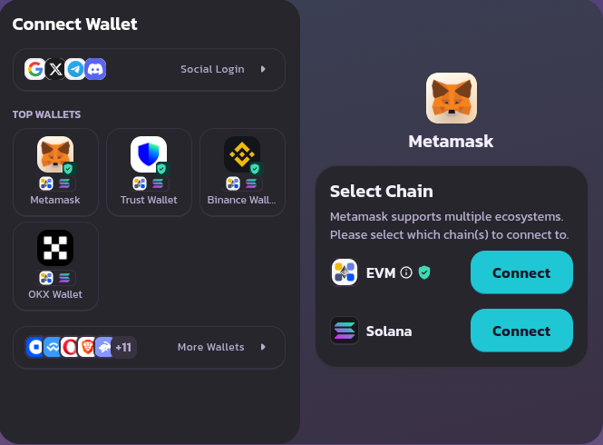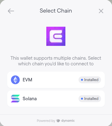 Select EVM or Solana, depending on the network you want to connect with. We will choose EVM for this guide.