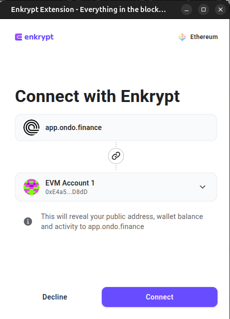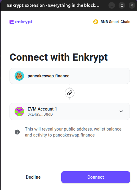 On the Enkrypt pop up, select the account you want to connect with then click ‘Connect’.