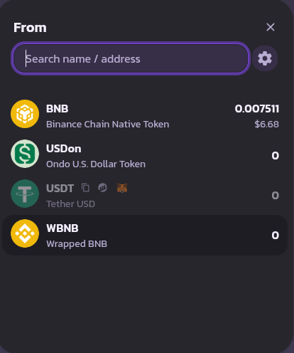 Select which token you want to swap from. We will select the BNB token for this example.