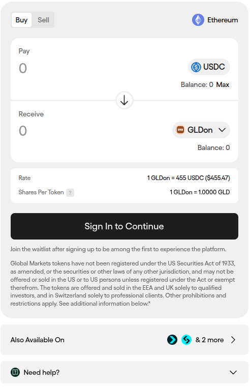 If you are unable to purchase through Ondo, you can click the ‘Also Available On’ button below the buy form.