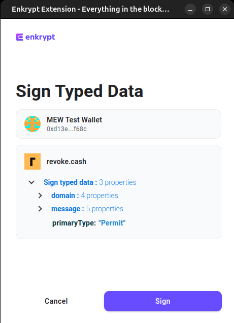 On the Enkrypt pop up, sign the permit by clicking ‘Sign’.
