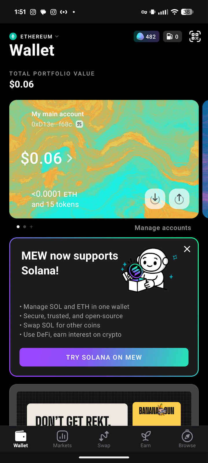 Founded in 2015 shortly after Ethereum’s mainnet launch, MyEtherWallet (MEW) began as a straightforward web interface for Ethereum users. Since then, it has evolved into a robust, multi-chain platform supporting dozens of blockchain networks and ecosystems. Through multiple market cycles, we’ve continued to build intuitive mobile and browser wallets designed for users of all experience levels. Today, you can seamlessly manage your SOL directly within the MEW Mobile app.