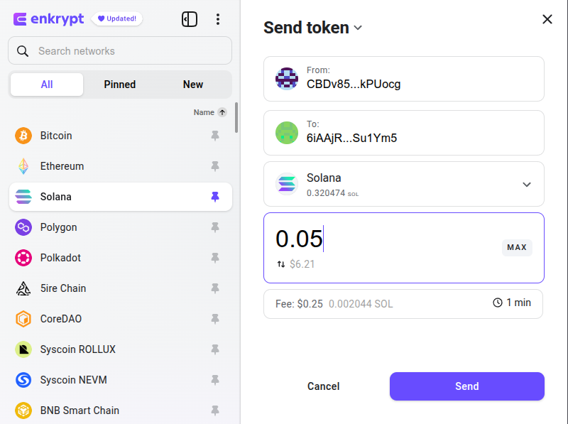 Back on Enkrypt, you click on the ‘Send’ button.