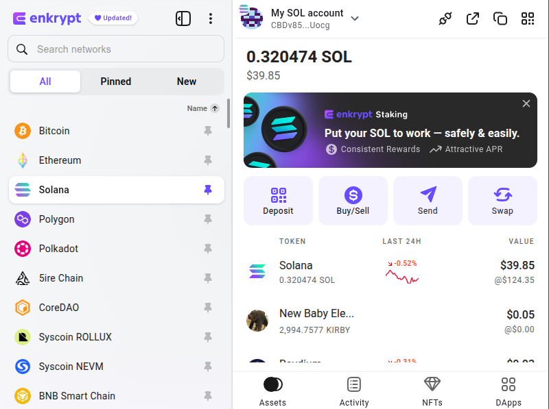 Use this guide to help send Solana from your Enkrypt wallet into MEW Mobile, where you can hold it, swap it to ETH, stablecoins, or any other token, and put it to work earning you some crypto instead of just sitting there!