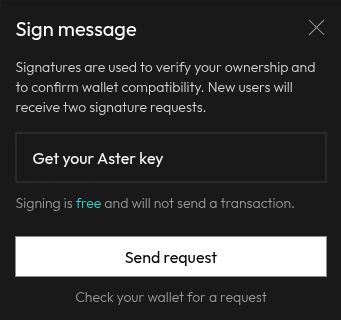 Next, you will need to sign a message to verify your ownership and compatibility with your wallet. Click ‘Send request’.