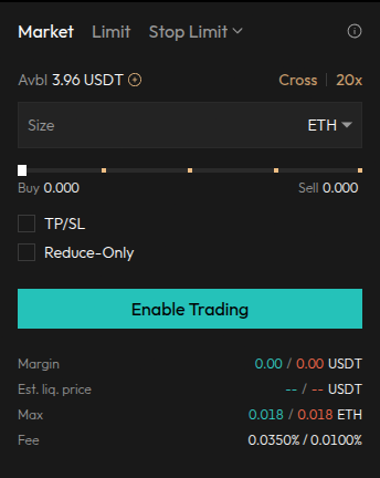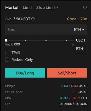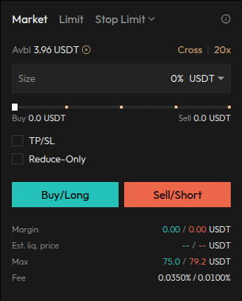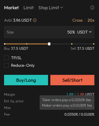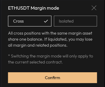 You can select between Cross or Isolated margin modes. We will leave it on Cross for this example.