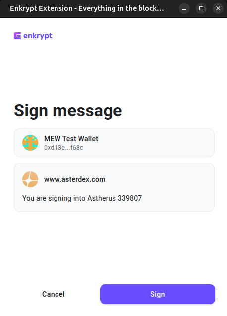 On the Enkrypt pop up, sign the message by clicking ‘Sign’.