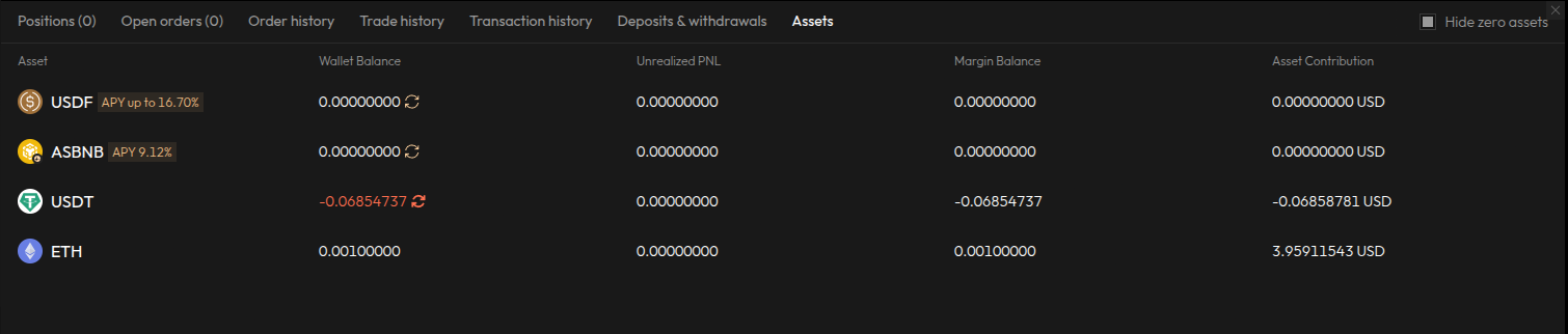 If you sold your position at a loss, you may need to rebalance your assets. To do this, click the ‘Assets’ tab then click the ‘refresh’ icon next to the asset that has a negative balance.