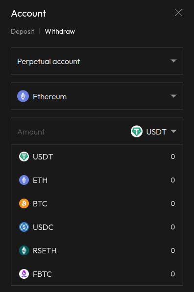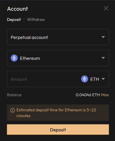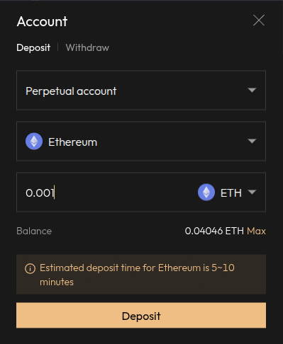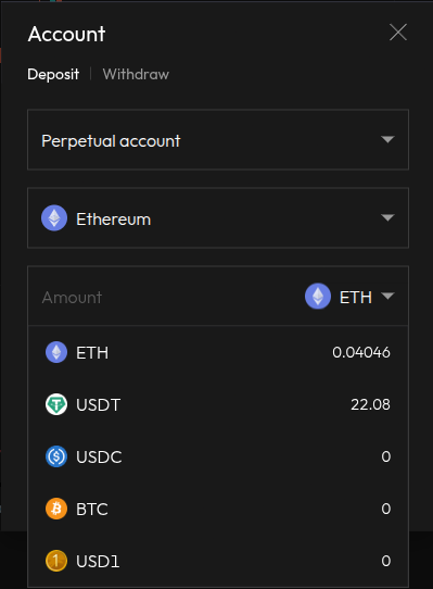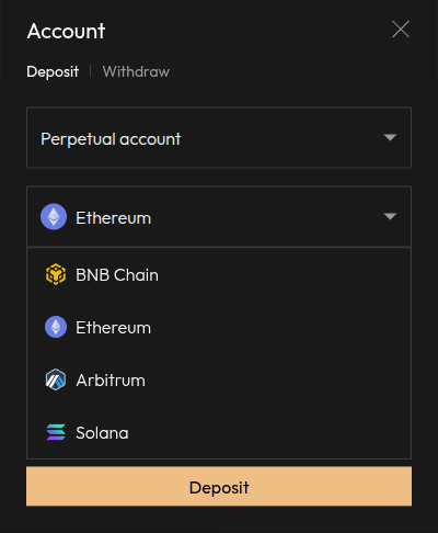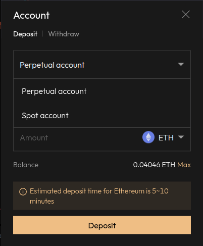 On the deposit pop up, you can click the ‘Perpetual account’ dropdown to open the account selection.