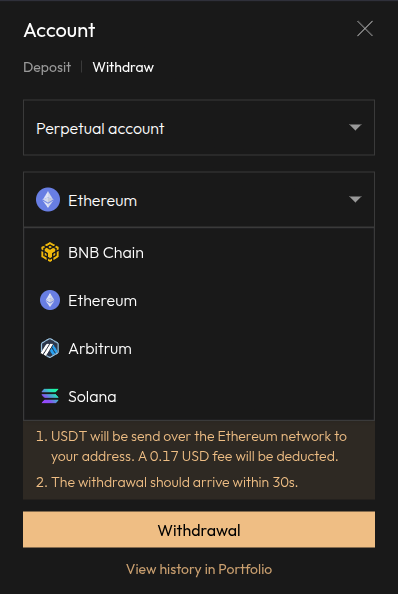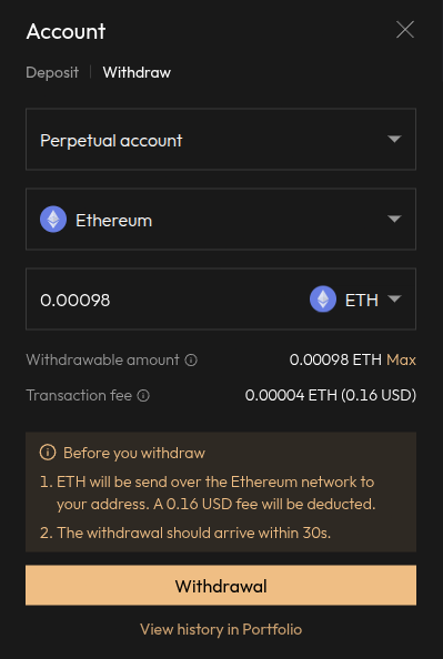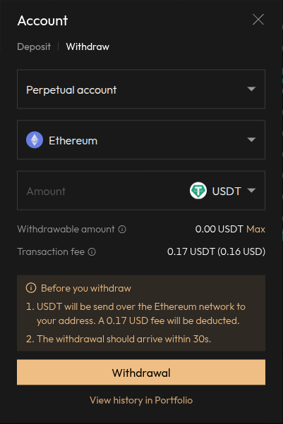 On the Withdrawal form, select the account you want to withdraw from. We will leave it on ‘Perpetual account’ for this example.