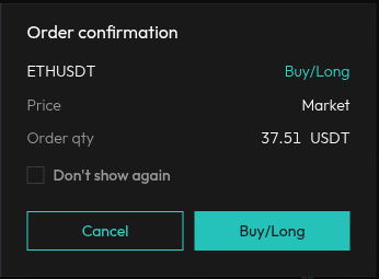Enter the amount you want to trade then select ‘Buy/Long’ or ‘Sell/Short’. For this example we will select ‘Buy/Long’.
