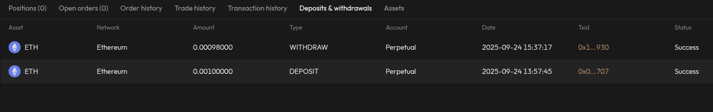 Once your withdrawal is completed, the status of the transaction will change to ‘Success’. The tokens will be returned to your wallet and you can view the transaction details by clicking the Txid.