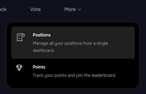 After the transaction is confirmed, you can view your position by clicking the ‘More’ dropdown in the navigation menu then select ‘Positions’.