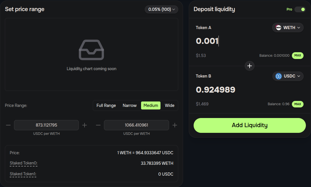 On the right side of the page, you can enter the amount you want to deposit into the pool then click ‘Add Liquidity’.