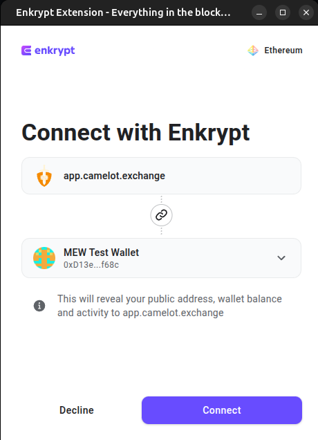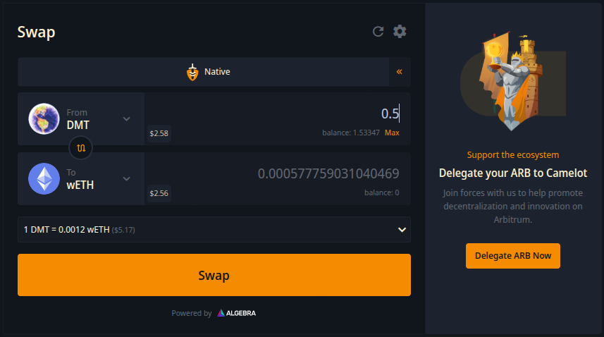 Disclaimer: Keep in mind Camelot Exchange is a third-party DApp and is not affiliated with MEW in any way. Using DeFi involves some inherent risk. Please do your research and proceed at your own discretion.