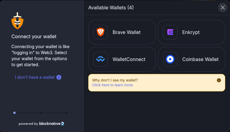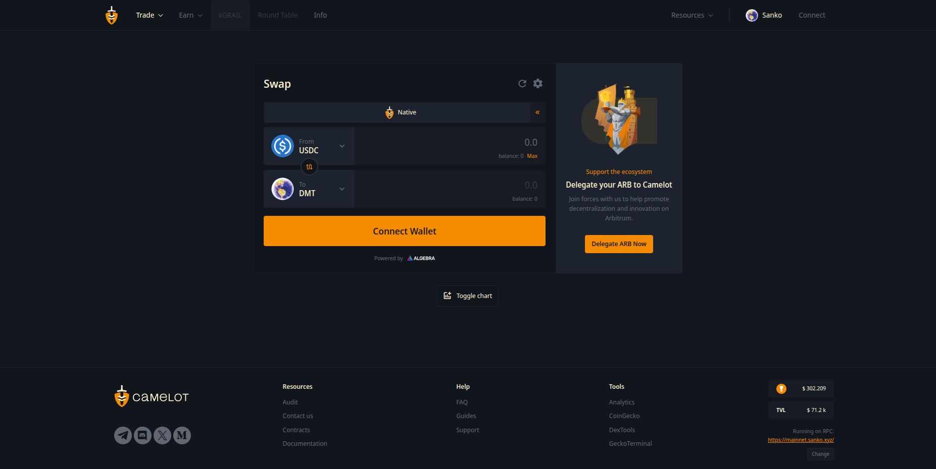 First head to Camelot Exchange then click ‘Connect Wallet’ at the top right.