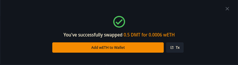 Once your transaction is confirmed, there will be a pop up stating your tokens were successfully swapped.