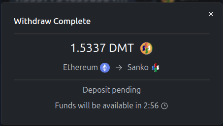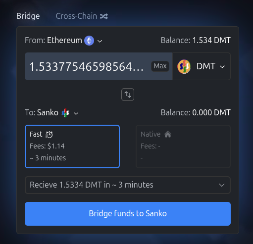 Enter the amount you want to bridge then click ‘Bridge funds to Sanko’.