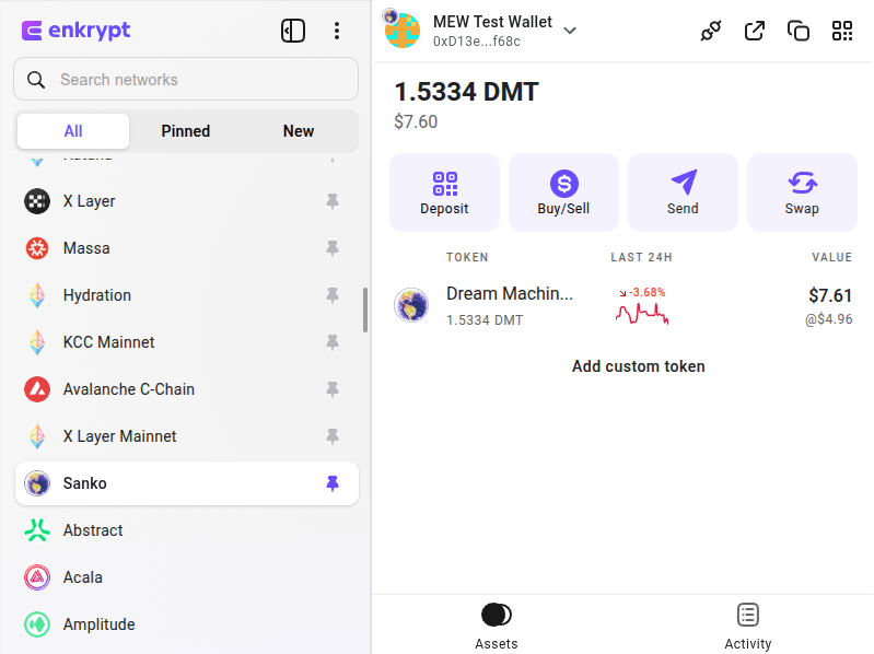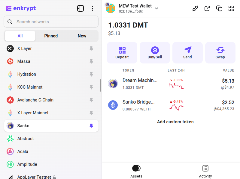 Once your tokens are deposited, they will appear in your Enkrypt wallet on the Sanko network.
