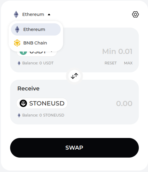 You can hover over the network dropdown to select the network you want to swap your tokens on. We will leave it on Ethereum for this example.