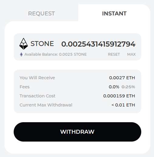 We will choose Instant for this example. Enter the amount of ETH you want to withdraw then click ‘Withdraw’.