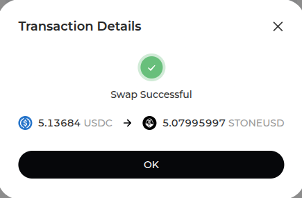 Once the swap transaction is confirmed on the blockchain the pop up will state ‘Swap Successful’.