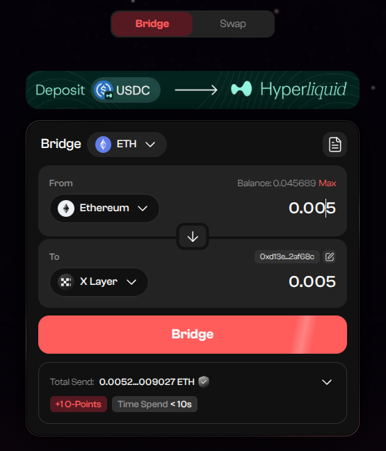 Select the network you want to bridge to. We will choose X Layer for this guide.