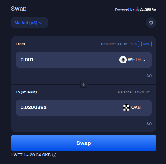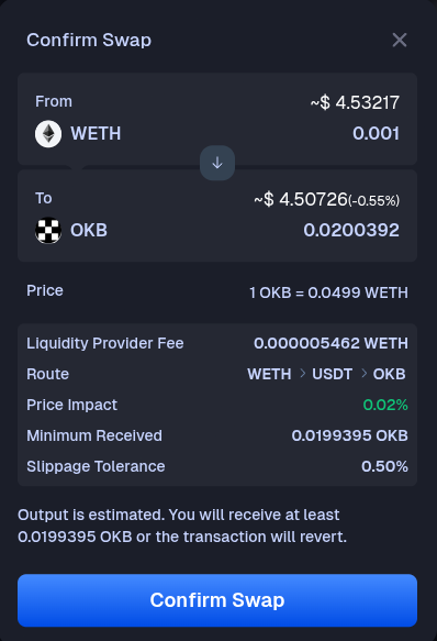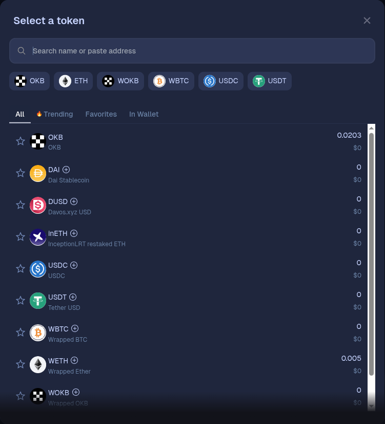 Select the token you want to receive. We will select OKB for this example.