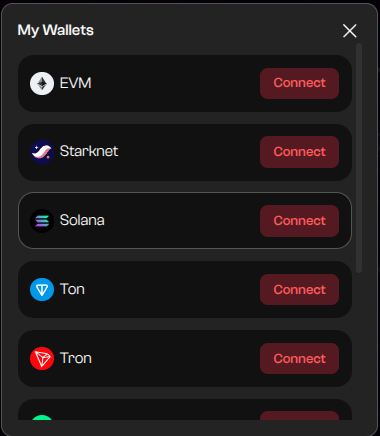 Click ‘Connect’ to the right of ‘EVM’.