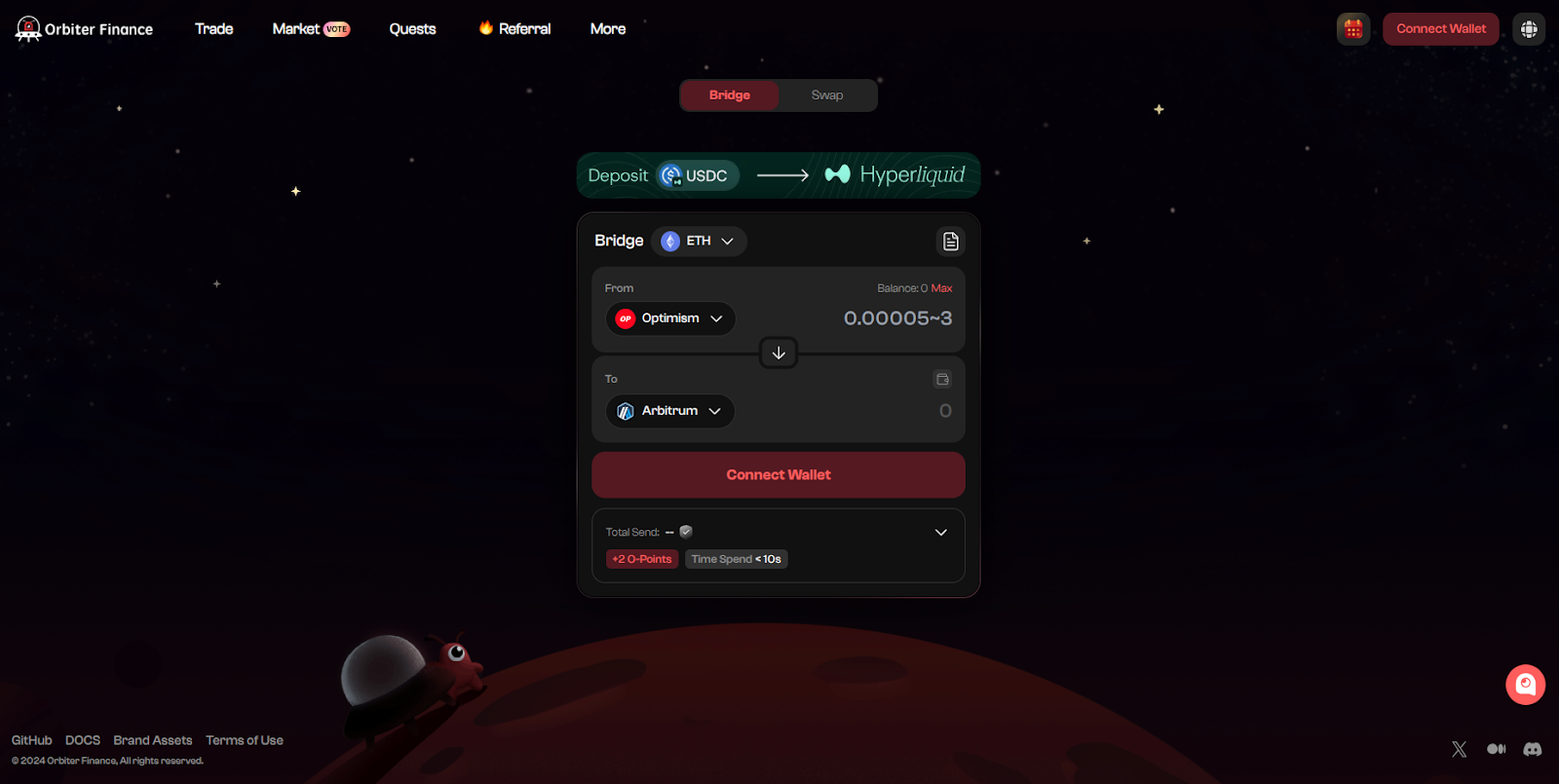 First, head to Orbiter Finance then click the ‘Connect wallet’ button at the top right.