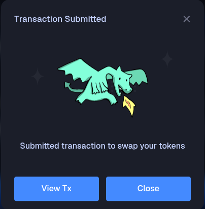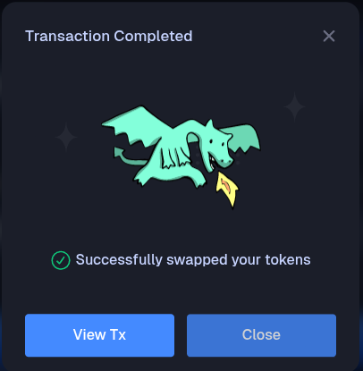 Once your swap is completed, the pop up will change to state that your tokens were swapped successfully.
