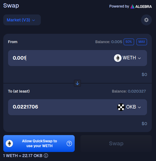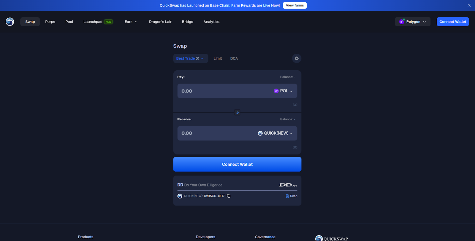 Disclaimer: Keep in mind QuickSwap is a third-party DApp and is not affiliated with MEW in any way. Using DeFi involves some inherent risk. Please do your research and proceed at your own discretion.