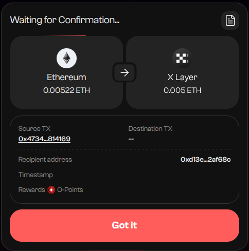 Now your bridging transaction is submitted and you just need to wait for confirmation.
