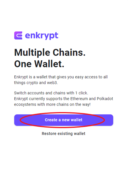 Download Enkrypt, install, click on the Enkrypt icon in the toolbar, and choose 'Create a new wallet'.