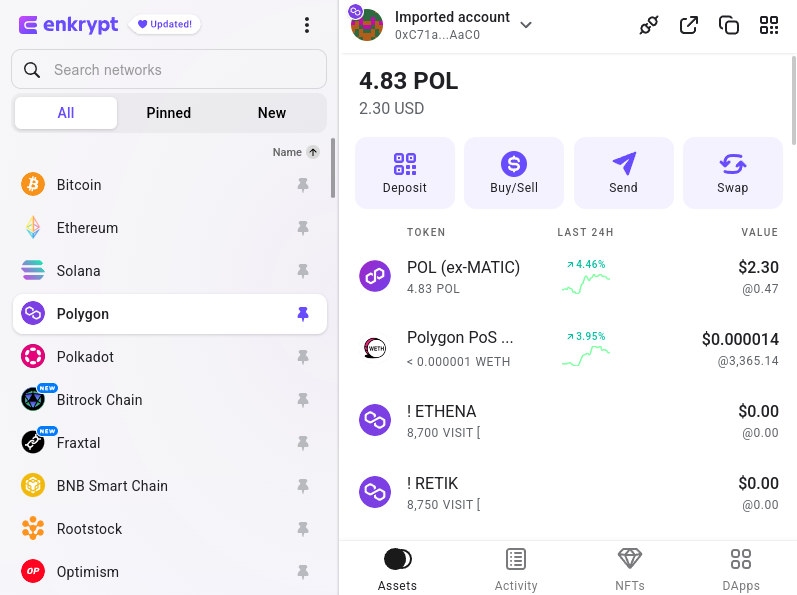 If your current crypto wallet doesn't support the networks you need, doesn't work as expected, or is not very beginner-friendly, try Enkrypt.